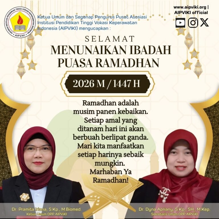 Ketua Umum dan segenap pengurus pusat Asosiasi Institusi Pendidikan Tinggi Vokasi Keperawatan Indonesia (AIPViKI) mengucapkan Selamat menunaikan ibadah puasa Ramadhan 2026M/1447H.